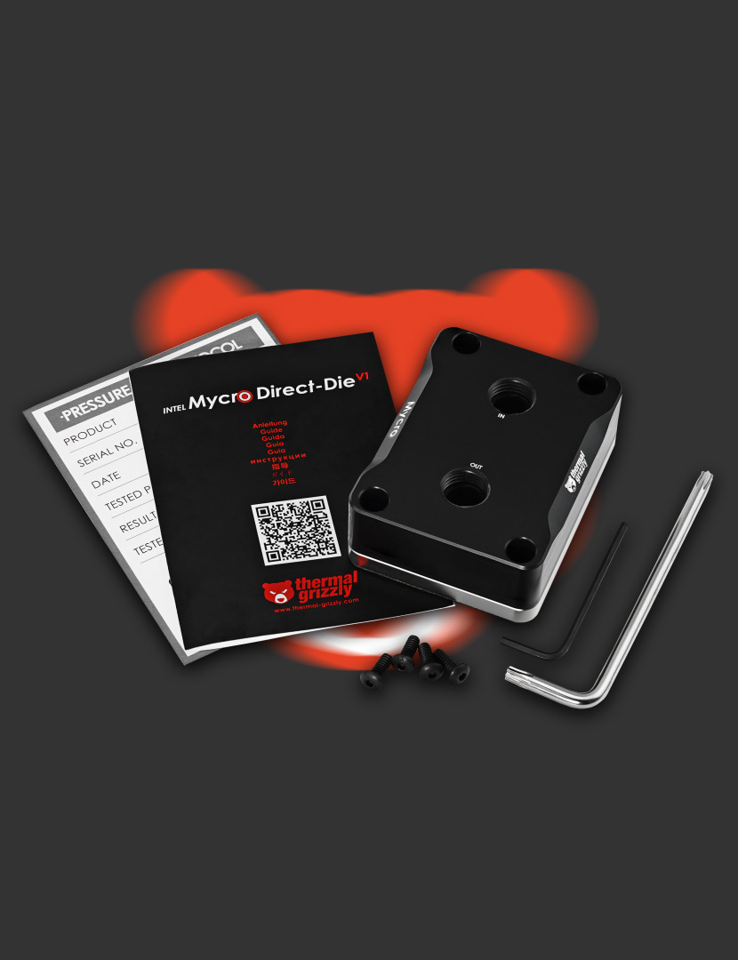 کنار این محصول، Thermal Grizzly نگاهی هم به محصول جدید دیگش یعنی واتربلاک Intel Mycro Direct Die داشت که مشابه خنک کننده EKWB مستقیم روی چیپ های پردازنده میشینه و با تست هایی که خودشون انجام دادند و اعلام کردند ادعا می کنن که تا 17.2 درجه سانتی گراد دمای کمتری نسبت به کولرهای معمولی تو بازار ارائه میده.