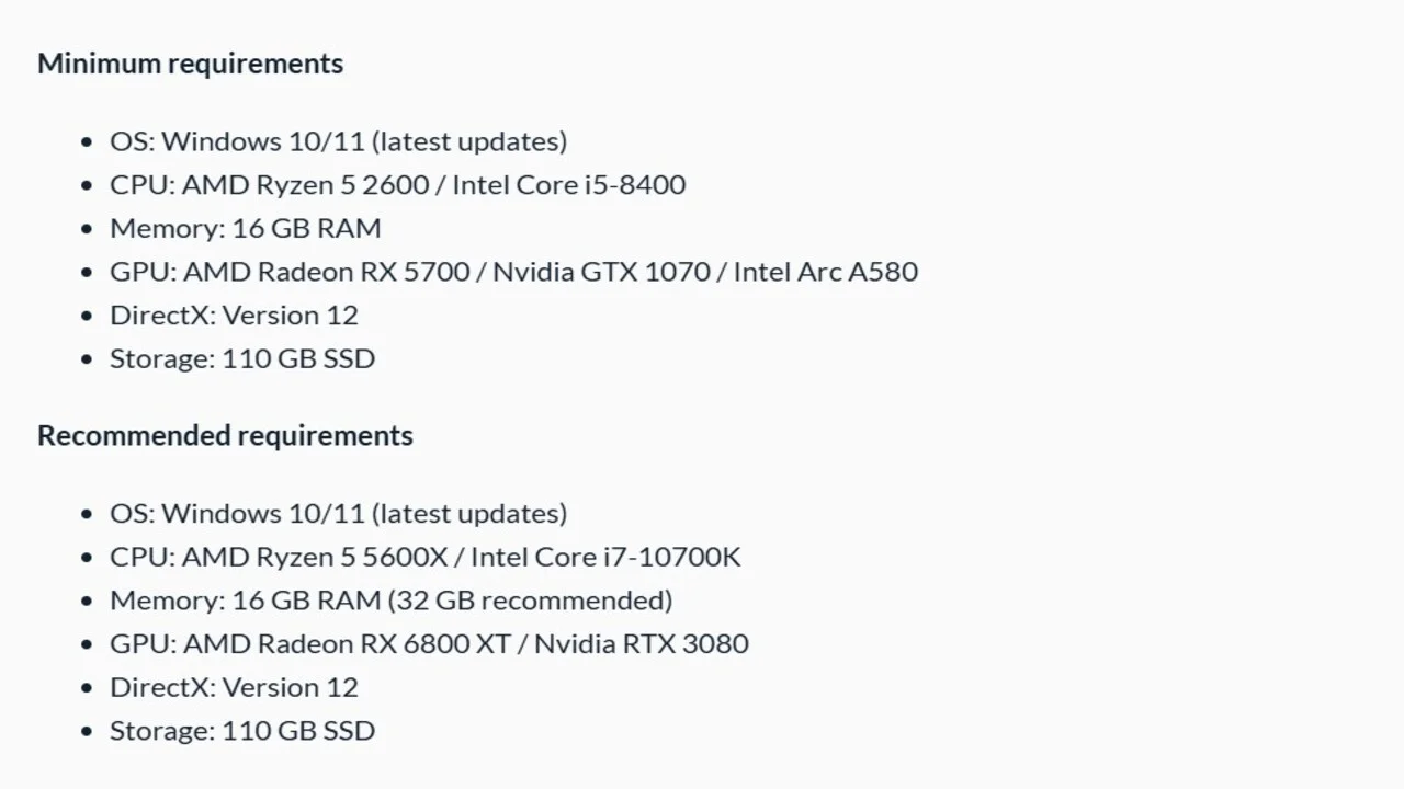 همانطور که بالاتر گفتیم، نسخه PC بازی مذکور حدود 110 گیگابایت حجم دارد. درحالیکه حجم نسخه PS5 معادل 76.9 گیگابایت و حجم نسخه Xbox Series X/S برابر با 77.3 گیگابایت است. این عنوان در تاریخ 7 آبان 1404 (29 اکتبر 2025) برای کنسولهای نسل نهمی «پلی استیشن 5» (PlayStation 5)، «ایکس باکس سری ایکس/اس» (Xbox Series X/S) و پلتفرم کامپیوترهای شخصی (PC) عرضه میشود.