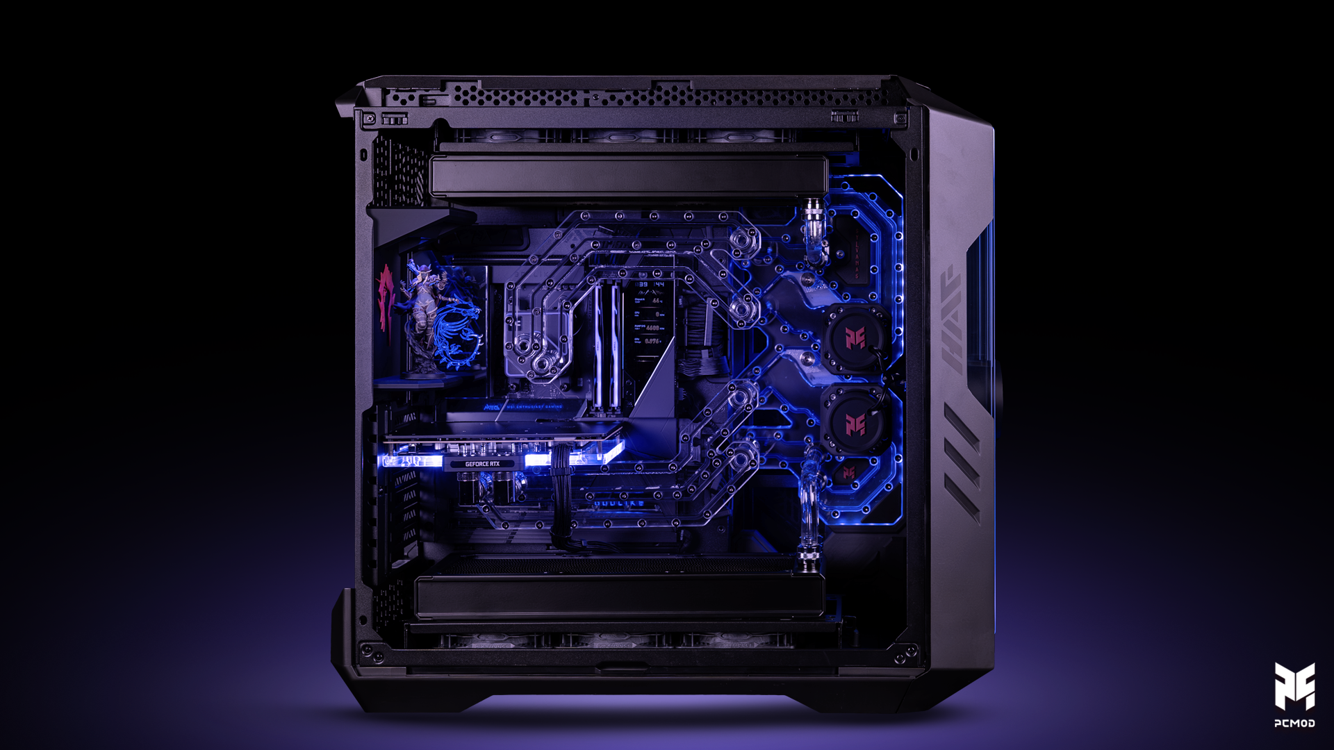 پروژهی Sylvanas هرچند ریشه در دنیای تخیل دارد، اما در واقعیت، اوج شکوه و قدرت را به نمایش میگذارد.این سیستم نه یک کیس معمولی، بلکه بیانی از هنر، مهندسی و روح یک ملکهی سایهها است.در طراحی آن، از معماری دواللوپ کاستوم واترکولینگ Alpha Cool بهره گرفته شده شاهکاری با دیستروپلیت اختصاصی PCMOD که جریان خنککننده را با نظمی معلق و جسورانه در میان قطعات به حرکت درمیآورد.هر جزئی از این پروژه با وسواس طراحی شده تا تلفیقی از زیبایی و کارایی مطلق باشد؛ جایی که نور، فلز و مایع در هماهنگی کامل، جلوهای از تاریکی باشکوه سیلواناس را بازآفرینی میکنند در قلب این هیولا، سختافزاری میتپد که هیچ مرزی نمیشناسد: Ryzen 7 9800X3D در کنار MSI RTX 5090 SUPRIM X، روی مادربرد افسانهای MSI GODLIKE ترکیبی که حتی در میان قویترین سیستمهای جهان نیز بیرقیب است.سیلواناس نهتنها نماد تسلط در دنیای گیمینگ است، بلکه نمایشی از نهایت قدرت، دقت و ظرافت مهندسی در قالب یک اثر هنری زنده محسوب میشود.