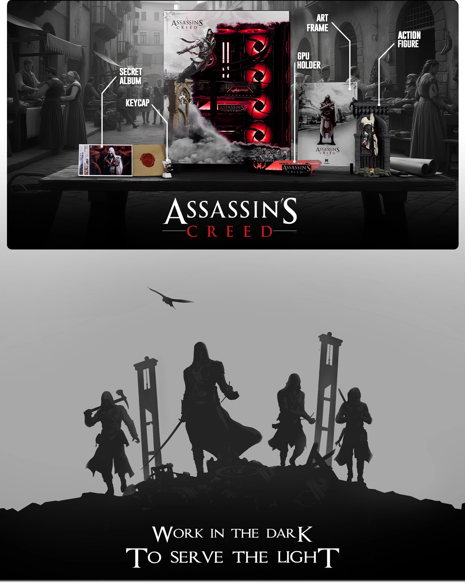 ادای احترامی باشکوه به فلسفه‌ی آزادی و میراث برادری قاتلان.این Art Frame با الهام از دوران رنسانس و شخصیت اتزیو آدیتوره طراحی شده تا نمادی از عدالت و زیبایی در قالبی کلکسیونی باشد.بدنه‌ی آن از پلکسی شفاف ممتاز ساخته شده و با چاپ UV دقیق و بادوام.